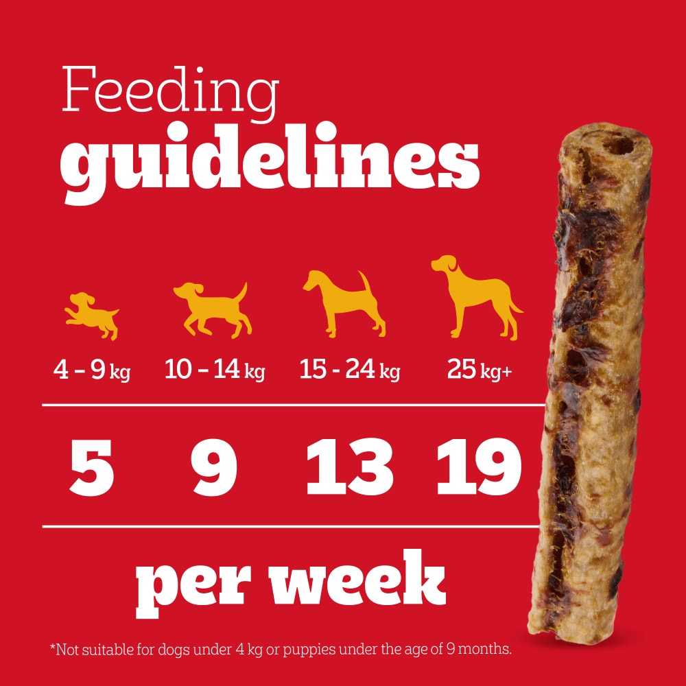 PEDIGREE Ranchos Lastin' Layers beef dog treats are low in fat and with no artificial colours.